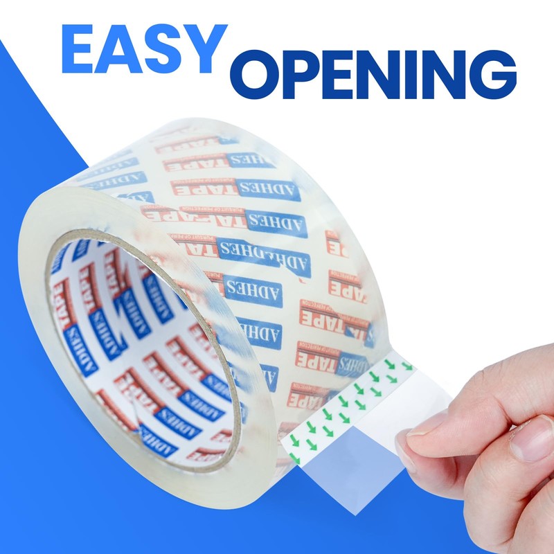 - 2)[CRYSTAL CLEAR & NO SLIVERING AND SPLITTING PACKING TAPE] Forget about that nasty yellowing that low quality tapes have. When you use ADHES packing clear tape with anti-silvering, anti-splitting you can experience the beauty of perfect, efficient and easy taping that promises maximum sealing and protection for your goods