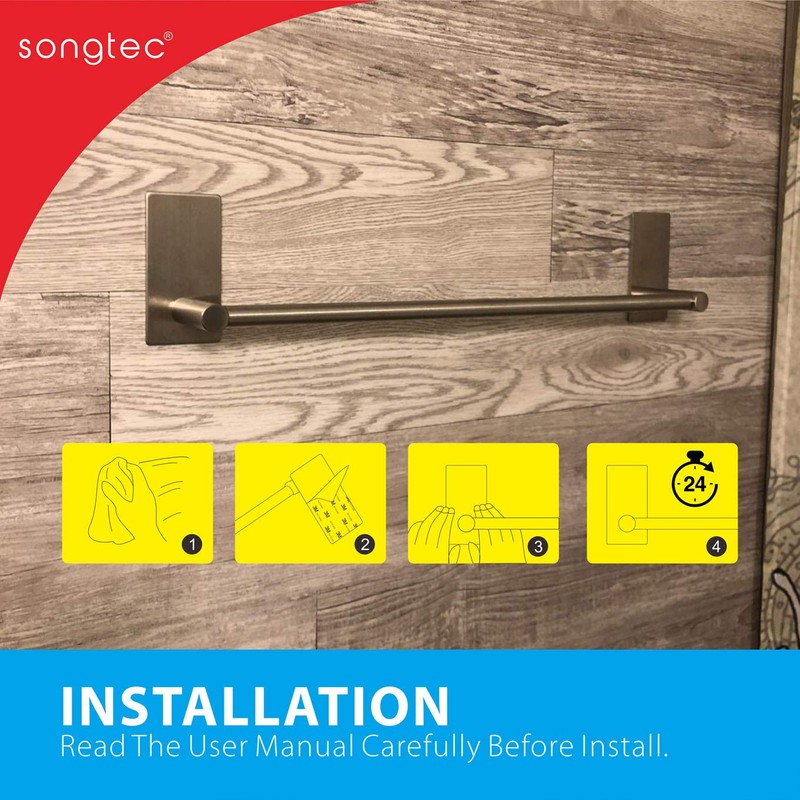 - MATERIAL - Our Stick On Towel Rack is made of premium SUS304 Brushed Stainless Steel, will not get rusty,