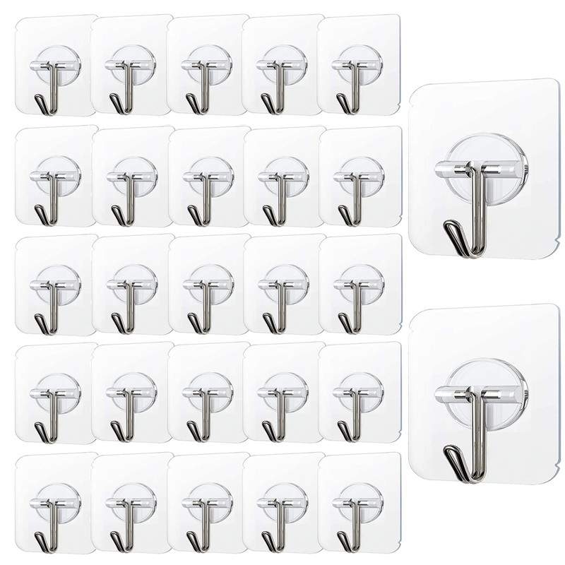 - PERFECT DESIGN: These adhesive Hooks are made of solid stainless steel and PC construction, ensuring quality and longevity. Stylish transparent design makes it almost invisible which is quite suitable for nice home decoration.