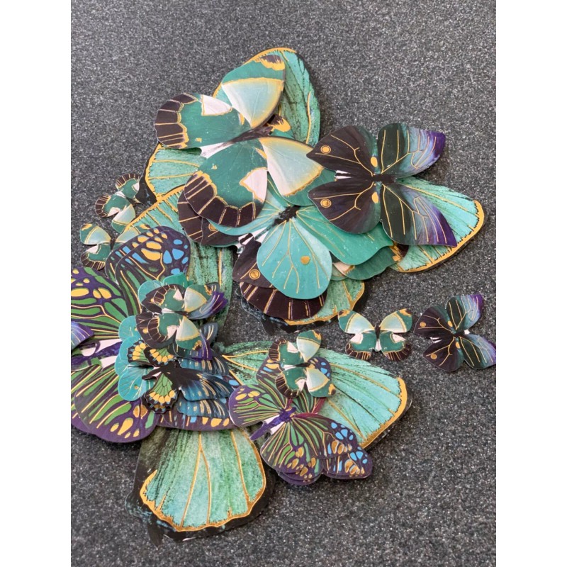 Adhesive Wwod Shapes LARGE COLORFUL BLUE/GREEN COLORS BUTTERFLY SHAPE MULTI-SIZE BUTTERFLIES 32pcs