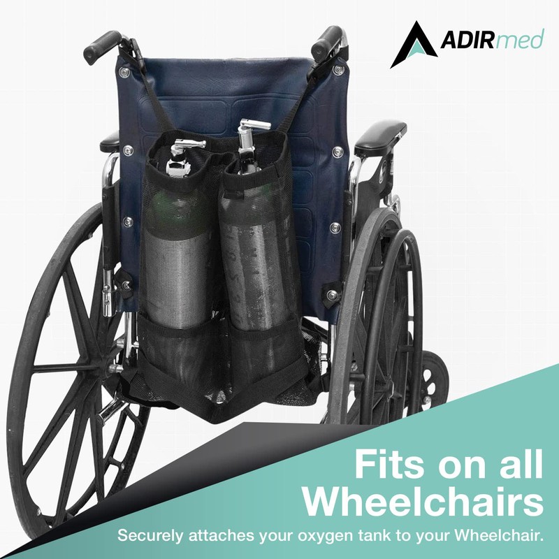 - ADJUSTABLE STRAPS. The AdirMed Oxygen Backpack has adjustable straps to accommodate most wheelchairs. It easily carries oxygen tanks with maximum comfort and safety.
