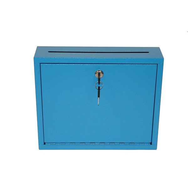 AdirOffice Multi Purpose Mail Box with Lock - Heavy Duty Drop Box - Commercial Suggestion Box -Wall Mountable Safe and Secure Ballot Box - 3" x 10" x 12" - Blue