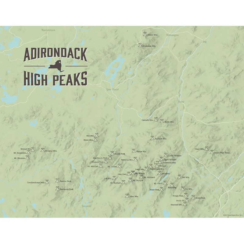 Adirondack High Peaks Checklist Map 11x14 Print (Sage)