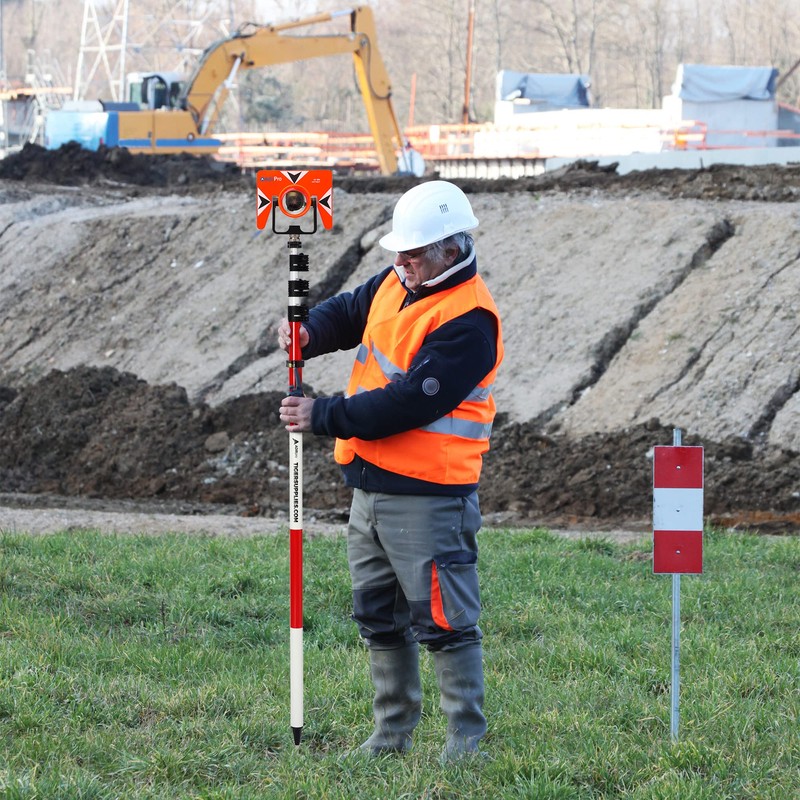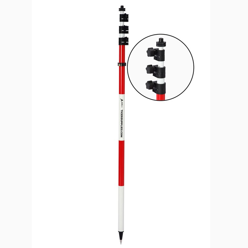 - DOUBLE SCALE. Supporting all surveying tasks, this fiberglass prism pole has dual graduations in feet/centimeters, alternating red and white markings, making it easy to read and very convenient. Furthermore, it has an adjustable tip to plant the prism pole into the ground.