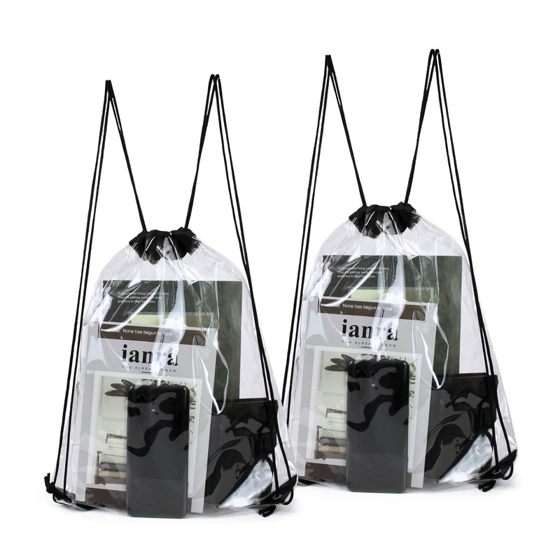 Package included: 2 x clear drawstring bags