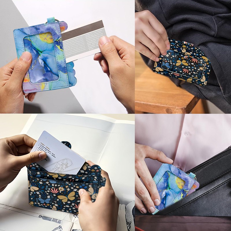 - 【Quality Material】Our ID card holders wallet is made of quality PU leather, which is wear-resistant and can effectively protect your card from being scratched. And the use of printing design, beautiful patterns and bright colors, very fashionable, can match different clothing styles