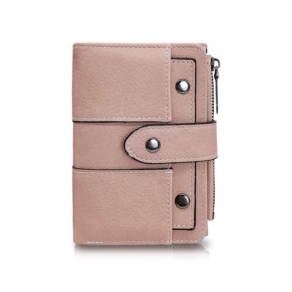 AdiStylinno Ladies Wallet, PU Leather Bifold Women Wallets Multifunctional Purse with Zipper Coin Pocket, Fashion Credit Card Wallet with 10 Card Slots, Cash Slot and ID Window (Pink)