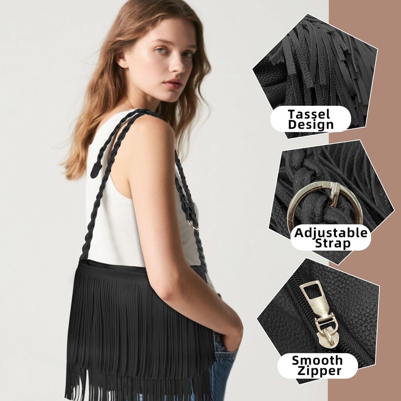 - Vielseitig und praktisch: Diese Fringe-Schultertasche eignet sich für verschiedene Anlässe wie Arbeit, Einkaufen, Reisen usw. und kann zu Ihren täglichen Outfits passen. Es kann auch als Geschenk an Freundinnen oder Familie bei besonderen Anlässen verwendet werden