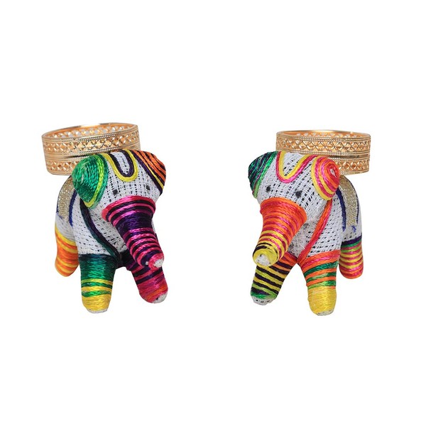 Aditri Creation 手作りエレファントティーライトホルダー2セットラッキーチャームティーライトキャンドルホルダースタンドTライトデコレーション新年ギフト装飾照明アクセサリー(ワックスなし) マルチカラー、ホワイト
