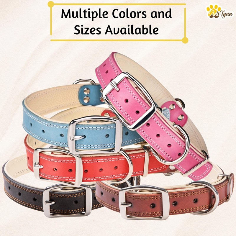 ADITYNA - Heavy-Duty Premium Blue Leather Dog Collar for Large Dogs - Perfect for Walking, Training, Hiking, and Running - Padded with Soft Genuine Leather for a Cozy Feel