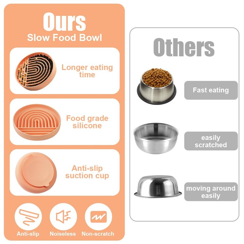 - 🍛【Food Grade Silicone】- - -The silicone dog slow feeder is made of non-toxic food-grade silicone, BPA-free, and can be safely used as a dog feeding bowl or drinking bowl. The silicone material is more flexible and stronger than traditional plastic bowls and is no longer chewable by dogs.