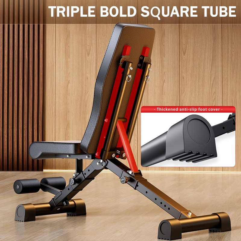 - 【Rock-Solid Stability and Safety】Constructed with multiple triangular thickened steel support pipes, this bench provides unyielding stability for a wide range of users. It supports up to 1000 lbs, making it easy to handle even the most intense workouts. The use of commercial-grade thick steel ensures the safety of each workout