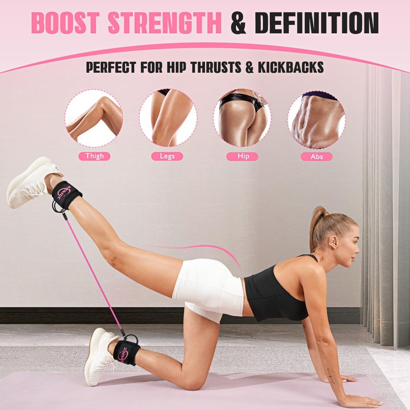Adjustable Ankle Resistance Bands with Cuffs - 3 Levels Fitness Bands for Legs, Glutes, Thigh Workout - Home Gym Equipment for Pilates, Yoga, Strength Training