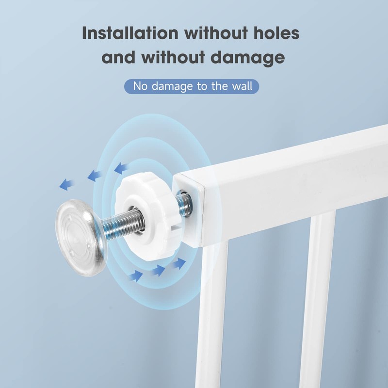Adjustable Baby Gates for Doorways Stairs and House, Auto Close Safty Gates, Easy Walk, Extra Tall and Wide Child Gate, Tall White Pet Gate, Metal Baby Gate Dog Gate, Pressure Mount