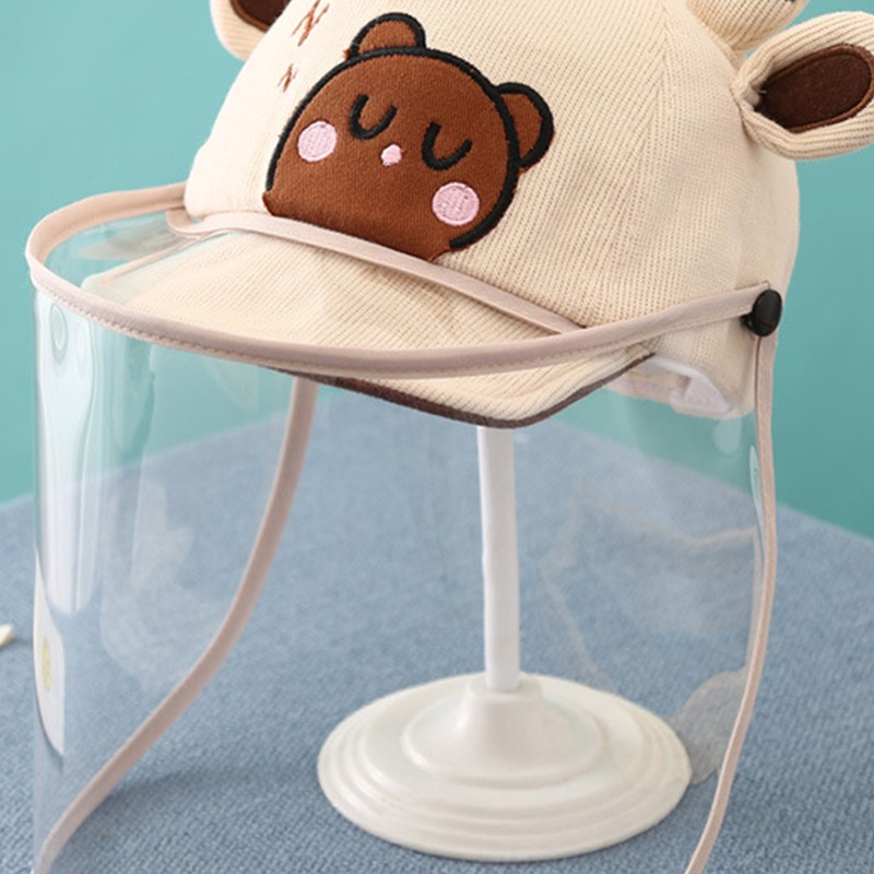 Adjustable Baby Sun Hat Cute Cartoon Infant Outdoor Removable Face Visor Shield for Droplet Dust Beige