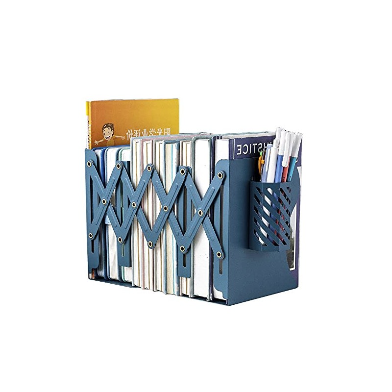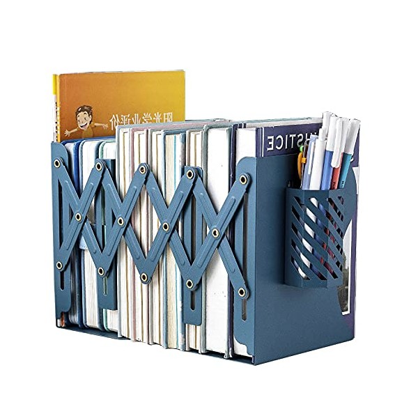 Adjustable Bookends Metal Book Ends for Heavy Book Holder Heavy Duty Bookends Nonskid Bookcase Desktop Book Organizer Binder Holder (Blue)