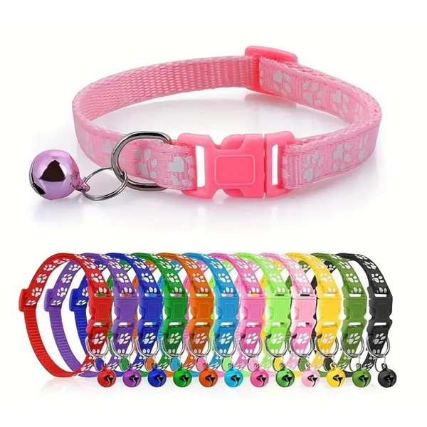 Adjustable Cat Collar with Bell - Multiple Colours - 19cm - 32cm (Baby Pink Paws)