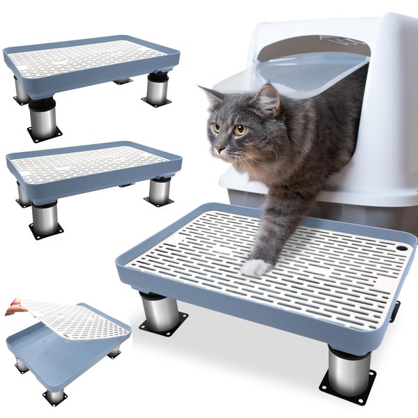 - 【Adjustable Height and Super Stable】The litter box step come with 4 stable and detachable stainless steel footstool legs for installing at the bottom of the ramp,non-leg height is 2”,after install the 4 footstool leg can adjust height from 5.12”-5.6”,very convenient to adjust height according to different cats needs,strong sticker help to reinforce the stable between leg and bottom of the ramp,non-slip.