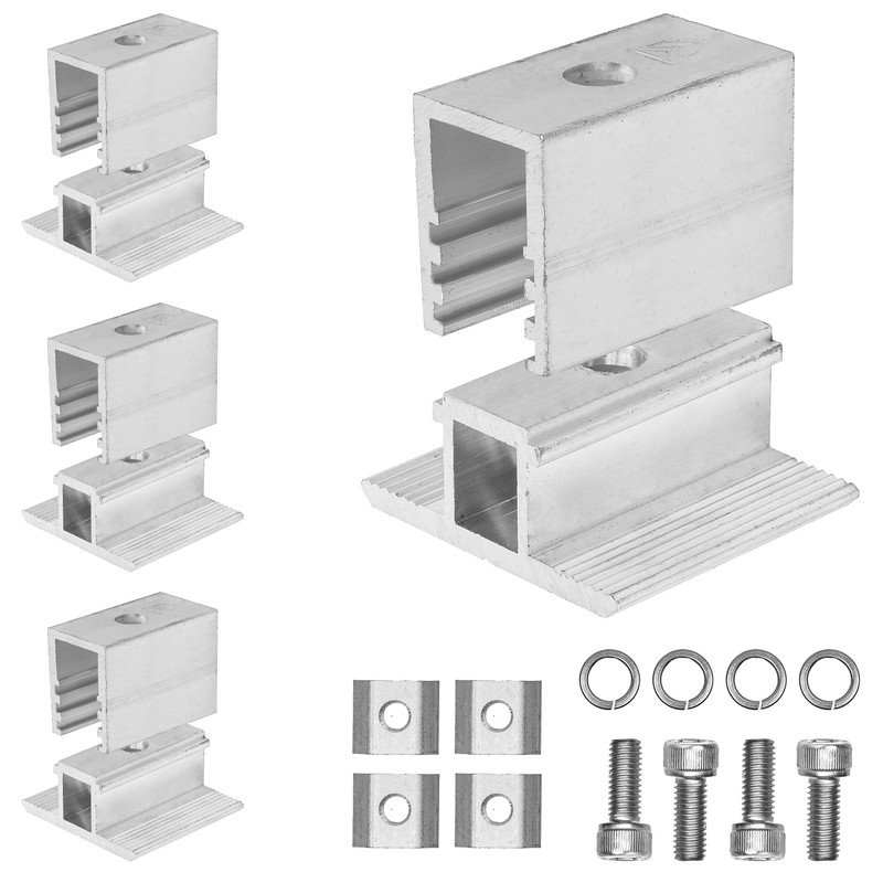 - Mounting kit for solar rails, 4 pieces clamp connectors made of aluminium, including 4 pack M8 x 20 mm screw, washer, flange nut