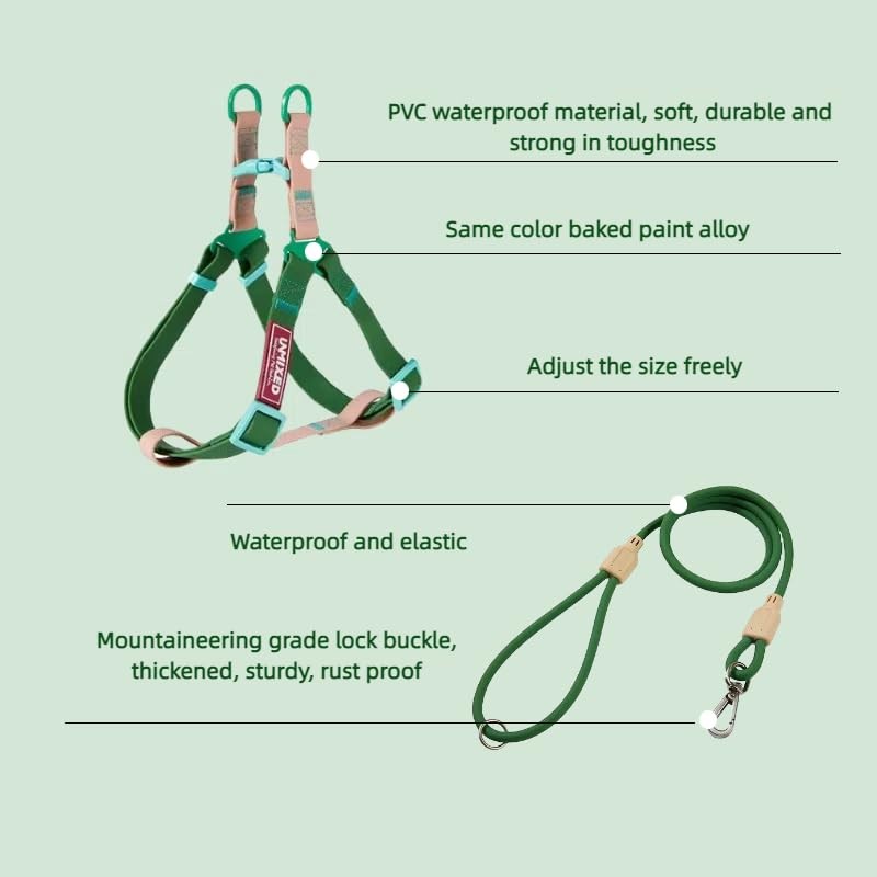 Adjustable Dog & Cat universal chest harness+traction rope set – Waterproof, Chew-Resistant – S (5-18 lb) / M (18-40 lb) Suitable for outdoor Dog walking