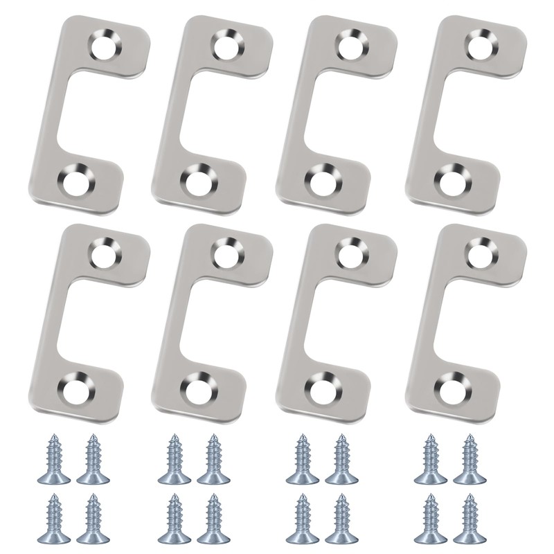 - PACKAGE INCLUDES: (8) latch strike plates and (16) screws, use this Large Hole Strike Plate to Enhance door security and provide additional protection for your door with this.