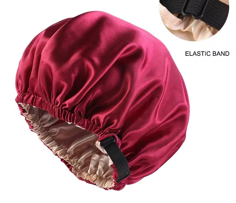🌙 Crafted with a double-layer imitation silk satin, this bonnet offers a smooth, gentle touch, helping to reduce friction and tangles overnight.
