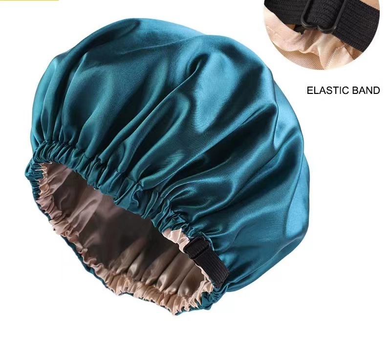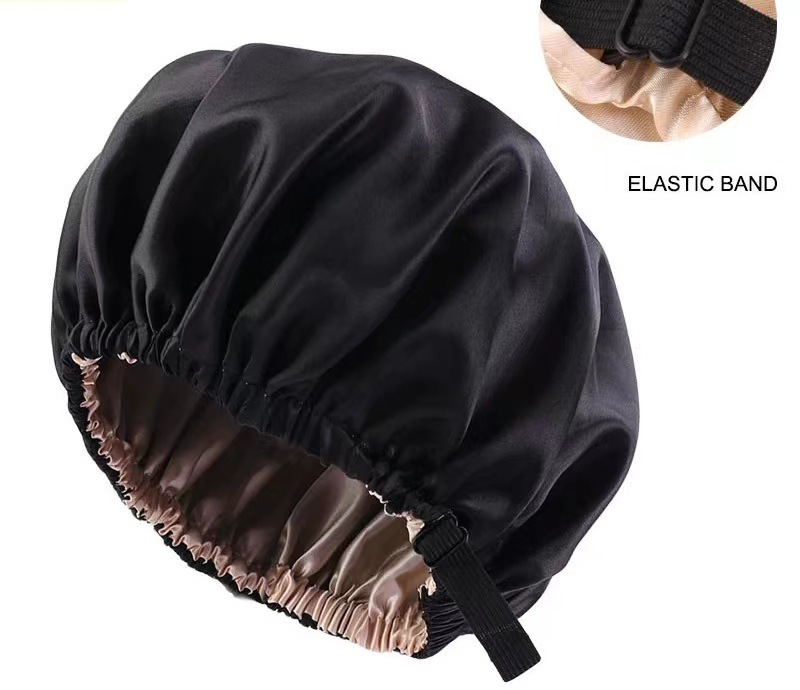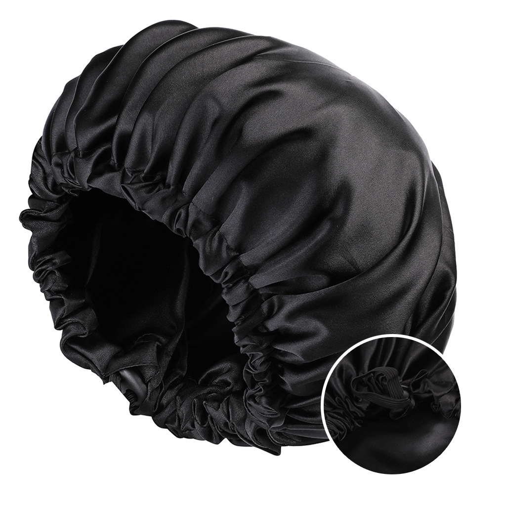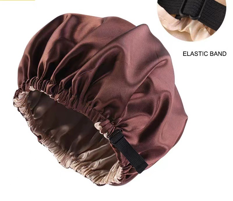 Adjustable Double-Layer Imitation Silk Satin Sleep Cap Adjustable Silk/Hatching with Black Interior 4ea