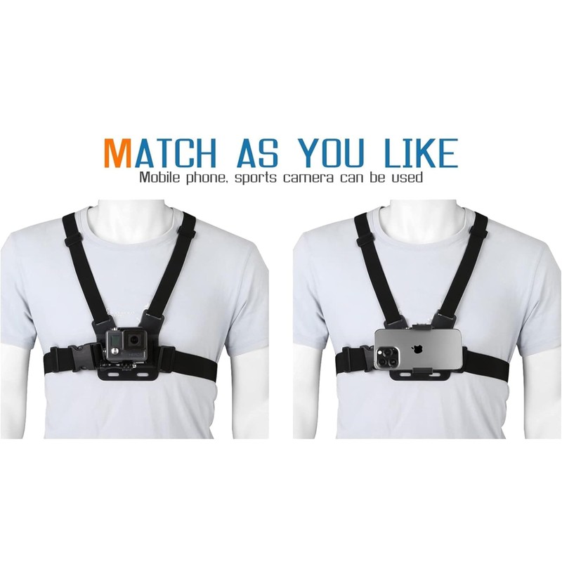 - The phone is mounted on the chest strap harness mount head strap mounts can also be an excellent hands-free shooting tool, which can free your hands, keep a stable video filming and record wonderful moments.