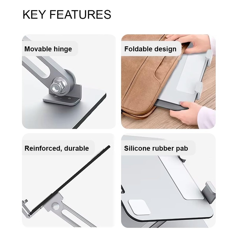 - 💼 Portable and Space-Saving – The stand is lightweight, foldable, and easy to carry. Its compact design makes it easy to store in your bag, perfect for professionals and anyone who needs a portable solution. When folded, it measures 6 x 7 x 1.5 inches and weighs just 1 lbs!