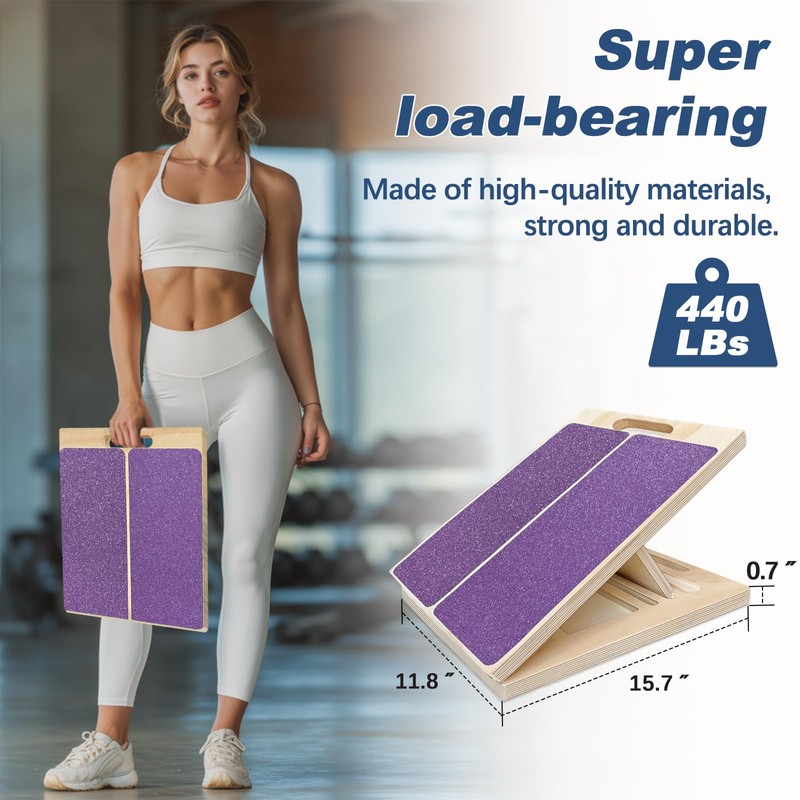 - UPGRADE PREMIUM HARDWOODEN SLANT BOARD: This Physical Therapy Leg Exerciser Slant Board is made of 11 layers of AA-grade poplar wood core,this wedge board is crafted for superior strength and stability. With a 440 lbs weight capacity, The PVC sandpaper surface & non-slip EVA base prevents slipping during calf stretching or squatting.
