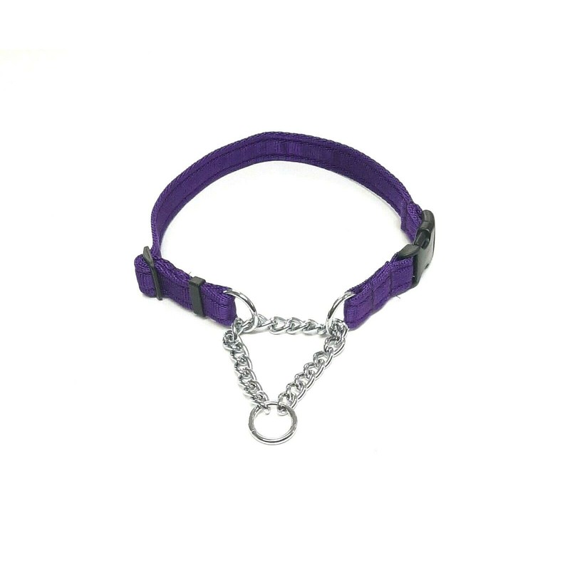 Adjustable Half Check Chain Dog Collar 20mm With Curved Side Release Buckle (Small, Purple)
