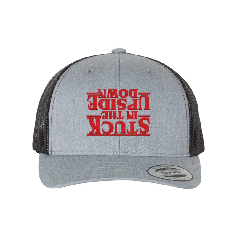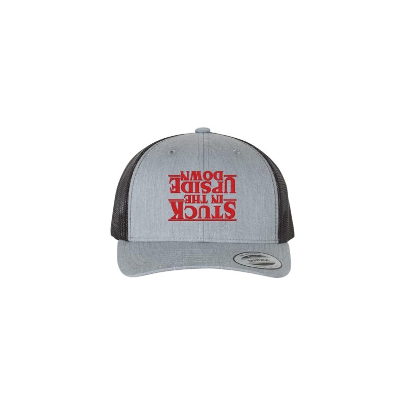 Adjustable Heather Grey/Black Structured Trucker Stuck in The Upside Down Structured Trucker Cap