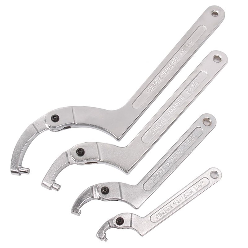 Adjustable Hook Wrench, Pin Wrench, C-Shape Spanner, Hand Tool, for Motorcycles (Round Head - Applicable Range: 1.3 - 3.0 inches (32 - 76 mm)