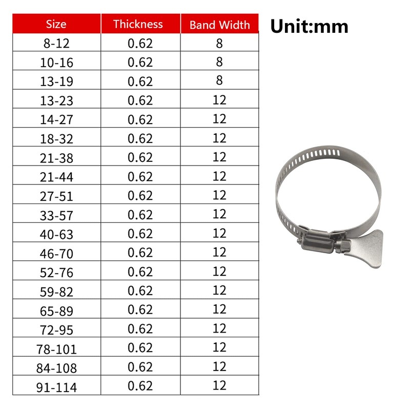 Adjustable Hose Clips 40-63mm 304 Stainless Steel Worm Drive Pipe Clamps (Pack of 10)