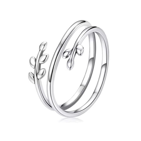 Adjustable Leaf Design Ring, 925 Sterling Silver, Double Circle Vine Pattern