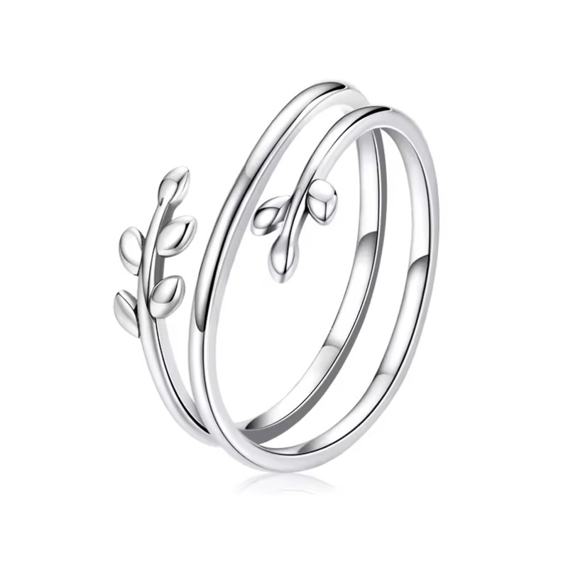 Embrace nature's elegance with this exquisitely crafted adjustable ring in 925 sterling silver. The distinctive double circle design features delicate vine and leaf motifs that wrap gracefully around your finger, creating a harmonious blend of organic beauty and contemporary style. The adjustable band ensures a comfortable fit whilst the polished silver surface catches light beautifully, adding sparkle to your everyday wear. Perfect for both casual and dressy occasions, this versatile piece can be worn alone or stacked with other rings for a more dramatic effect. The intricate leaf pattern symbolises growth and renewal, making it a meaningful accessory for your jewellery collection. Crafted from genuine 925 sterling silver, this ring promises lasting quality and timeless appeal. The sophisticated yet whimsical design makes it an ideal gift for someone special or a delightful treat for yourself.