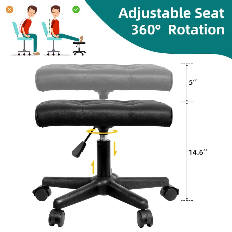 Adjustable Leg Rest with Wheels for Office Desk & Gaming Chairs - Ergonomic Footrest and Office Chair Foot Rest with Thick Padding