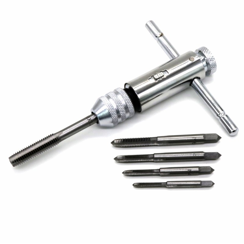Adjustable M3-M8 3mm-8mm HSS T-Handle Reversible Ratchet Wrench Tapping Threading Tool with Hand Screw Tap