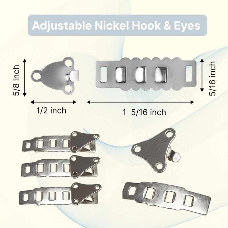Adjustable Nickel Hook & Eyes Sewing Hooks and Eyes Closure - 3 Sets in a Pack