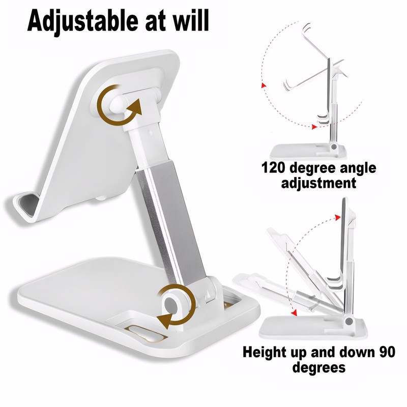 Adjustable Phone Stand for Desk,Fully Foldable Angle Height Adjustable Mobile Phone,Metal Rotating Phone Holder for Binge Watching,Compatible with All Smartphones Holder(White)