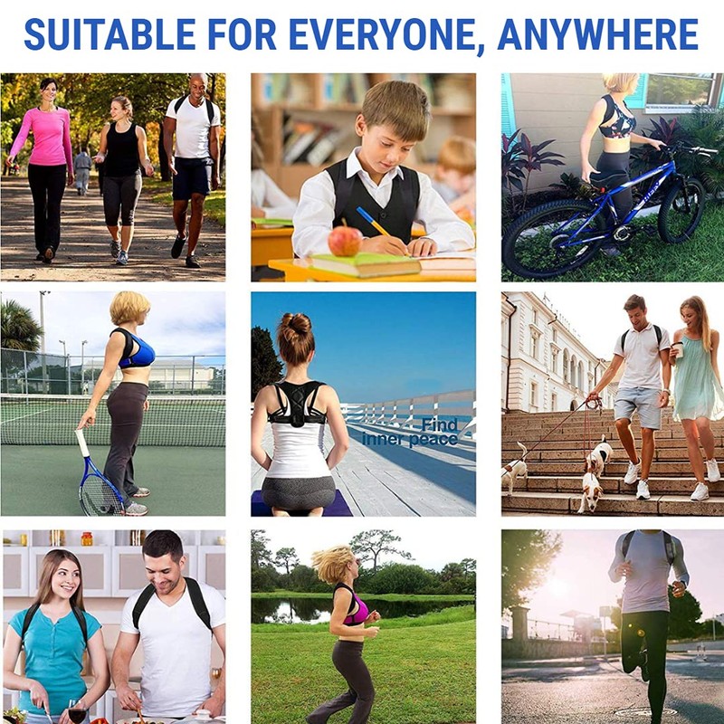 • ADJUSTABLE STRAPS The posture corrector brace has adjustable straps and fits any body. It can be loosened and tightened according to height.