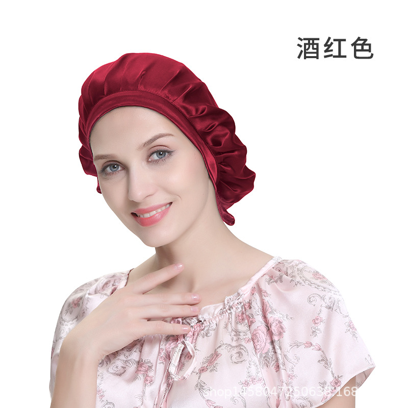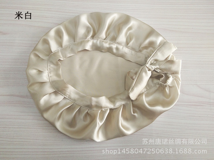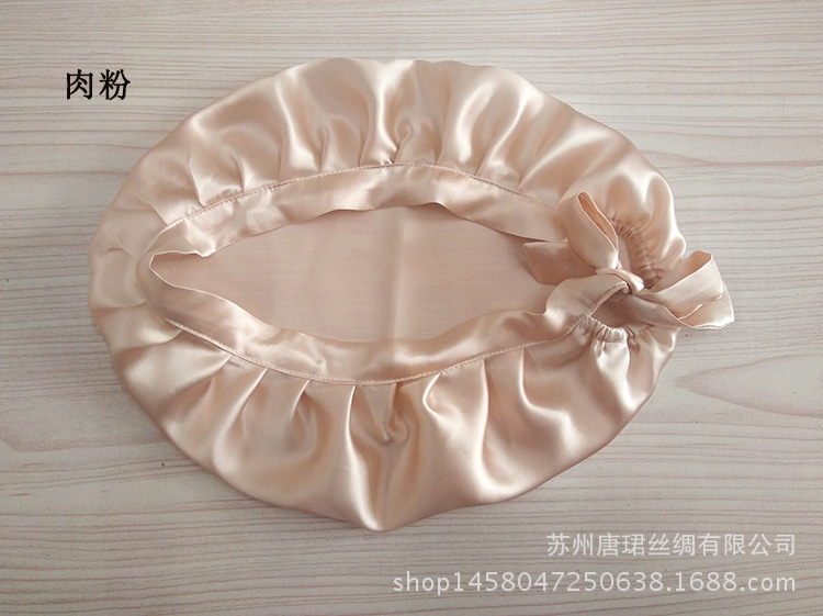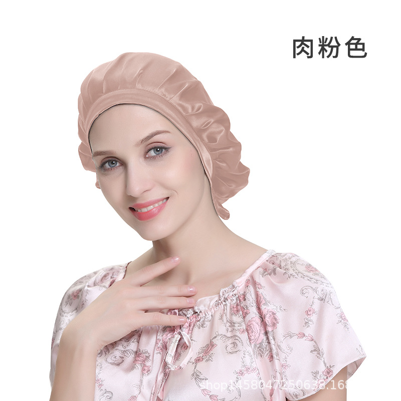 Adjustable Seamless Lace-Up Mulberry Silk Hair Cap Available/Bean Paste 4ea