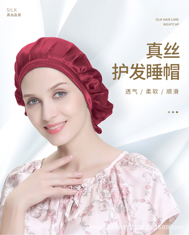 ✨ Embrace the luxury of pure mulberry silk with our exquisite hair cap, designed to cradle your hair in softness and reduce friction.