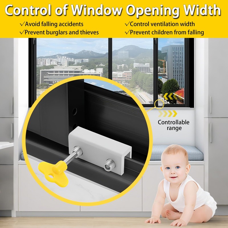 - Essential Child & Pet Safety:Keep windows partially open for ventilation while preventing accidents. Our security lock with keys protects children, elderly family members, and pets from falls and restricts unauthorized entry.