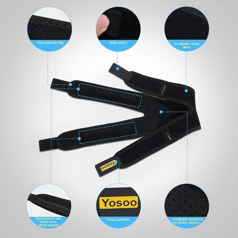 - Material: made out of durable, high-quality materials - soft and strong neoprene, elastic, rubber strapping which grips around the patella. Breathable, skin-friendly and absorbent.