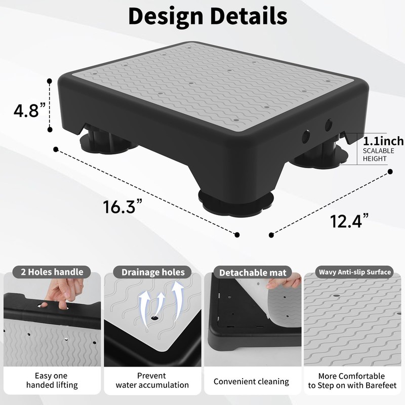 - Dual Anti-slip System: The surface of stepping stool is covered with a wave-textured mat enhances grip and barefoot comfort; Non-slip pads on all base bottom ensure stability. Reinforced safety design prevents slips during indoor or outdoor use