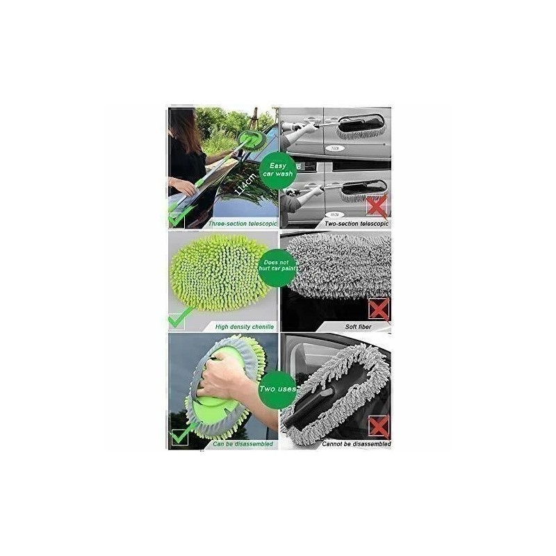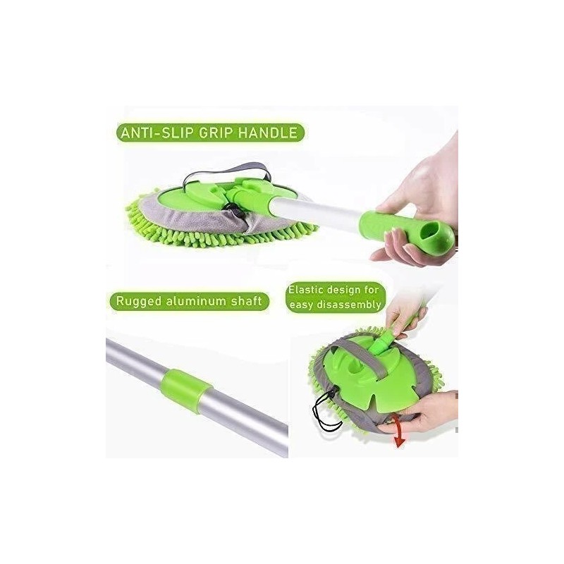 - [Key feature:] With its lightweight design, the microfiber mop head is soft, lint-free, and absorbent, ensuring powerful cleaning without harming car paint or grime.
