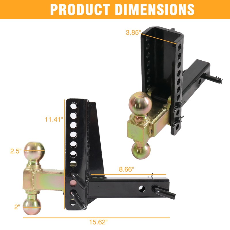 - 【6-INCH ADJUSTABLE BALL HOLDER】This trailer hitch ball allows 6 inches up and 6 inches down for excellent traction, and the drop hitch can be freely adjusted in height to meet your needs, making the towing process more flexible and convenient