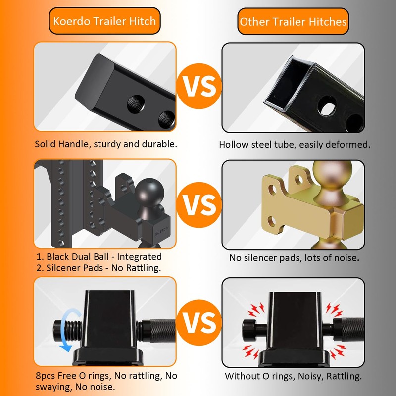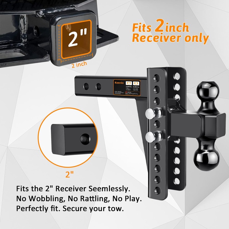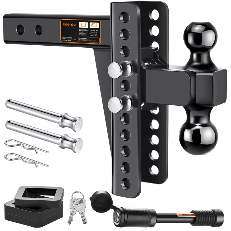 Adjustable Trailer Hitch -Drop Hitch-Tow Hitch Fits 2 inch Receiver-8inch Drop/Rise, 2" & 2-5/16" Ball Hitches for Trucks, 20,000 LBS GTW, Trailer Hitches with Anti-Theft Pin, Black