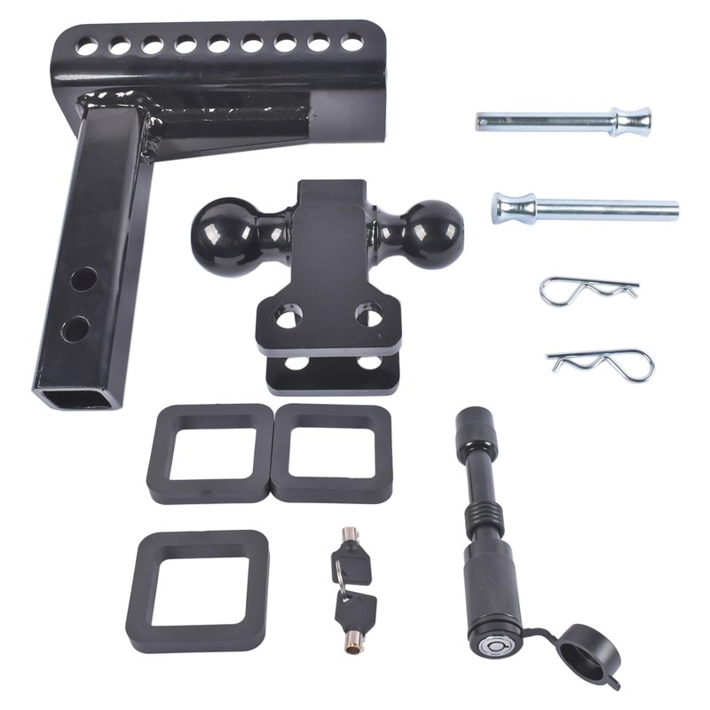 - Features: Versatile Compatibility: Fits 99% Towing Needs, fits 2" Receiver Only This Adjustable trailer hitch with 2.0 inch receiver effortlessly fits a wide arrange of connectors including heavy Trucks, RVS, Farm Trailers, Cargo Trailer, Live stock trailer, Campers and even off-road vehicles like ATVS and Motorcycles. Adjustable Dual Balls, 6" Drop/Rise: The 2" hitch ball is with towing capacity of 15000lbs and the 2-5/16" hitch ball is with 20000lbs towing capacity which allows for 6" drop down depth and 6" rise height so the hitch can be easily switched to different trailers without having to worry about it not sitting level.